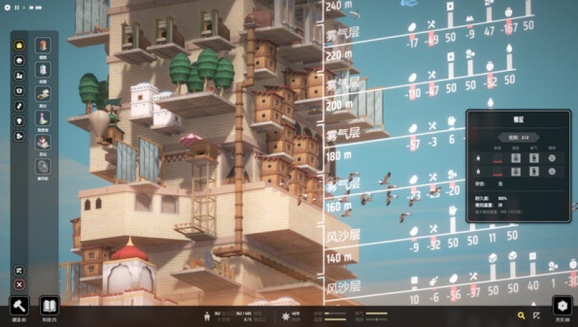 解锁并建造仪式平台,即可举行各类仪式。有的仪式可以影响整体气候,有的仪式则会改变塔民的状态。不过,所有仪式都需要持续消耗物资维持,是常驻增益还是短期爆发,决定权在各位塔主手中。
