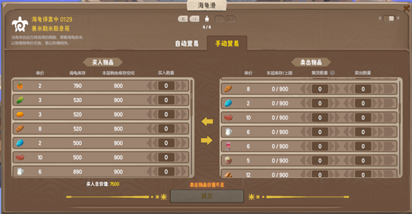 塔主既可以看准海龟来港的时机,手动配置贸易往来的细则,也可以开启自动贸易功能,让海龟成为长期贸易伙伴,每次到港则自动进行交易。