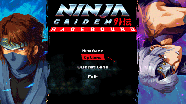 1、在本站下载忍者外传怒之羁绊游戏压缩包,解压后双击“NINJA GAIDEN Ragebound.exe”启动游戏进入游戏主菜单。