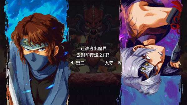 解锁结局B需要推进至关卡4-6【杀入阴影】,打到该关卡的最终BOSS时会弹出选择【让谁逃出魔界去封印传送之门?】,确保在此时选择【九守】。