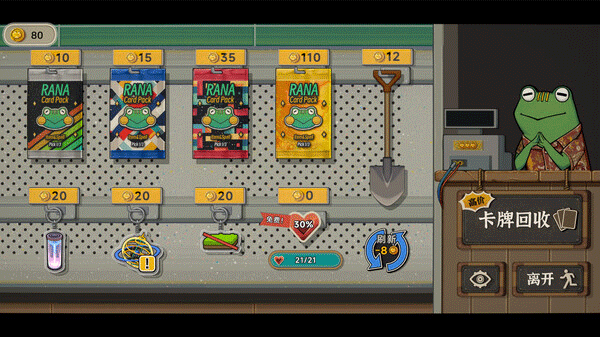 1、融合 “牌组构建” 与 “策略肉鸽” 的卡牌游戏,化身农场打工人,通过抽卡打牌收作物、赚金币、优化卡组,应对青蛙公司递增的 KPI。