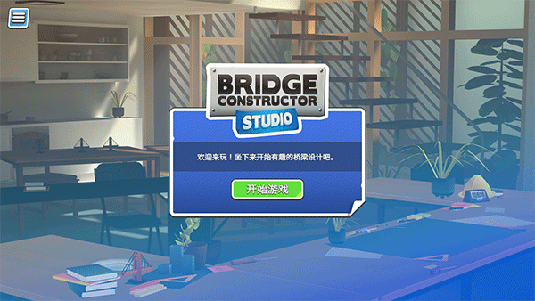 2、安装完毕后双击“Bridge Constructor Studio”打开游戏,进入游戏主菜单后点击开始游戏;