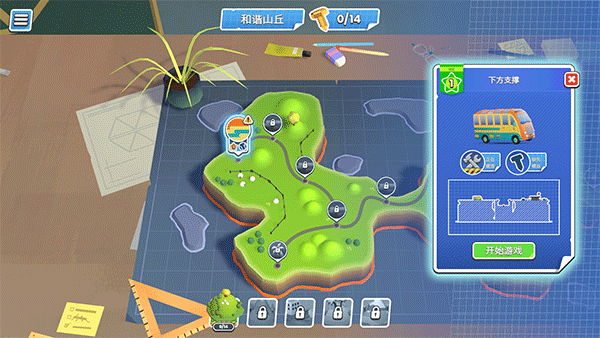 打造了五个视觉风格鲜明的场景,包括高楼密集的都市、积雪覆盖的峡谷、植被繁茂的山谷等,每个场景都有独特的地形特点,为桥梁建造带来不同的环境挑战。七种载具拥有各自专属的物理特性(如重量、行驶速度、通过需求等):可为怪兽卡车设计能完成特技动作的斜坡与环路,为重型木材运输车搭建承重能力极强的钢结构桥梁,还能利用关卡中的移动物体,协助越野车克服复杂障碍;披萨外卖车、物流卡车、度假车、城市公交车等生活化载具也会加入游戏,让建造任务更具多样性与趣味性。