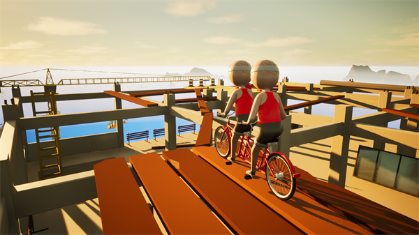 4、前所未有的合作模式 — 两名玩家在线共控一辆自行车:一人管油门/刹车,另一人负责转向。