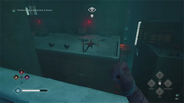 有些敌人我无法通过隐身暗杀来打击。事实证明,这是我蹲下时俯视他们的角度。你会注意到,如果你在蹲下时危险地靠近你所在平台的边缘,你应该能够完成隐身杀戮,但是,我发现自己在试图以这种方式排列时不小心掉到了敌人身上。相反,我建议通过蹲下等待,然后在他们进入隐身杀戮范围时立即站起来并快速按下上下文按钮提示以执行杀戮,然后再次蹲下以恢复隐身姿势。