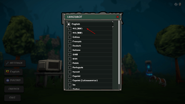 2、在界面左侧选择“English”,随后找到“中文(简体)”并点击应用,即可将游戏切换为中文模式。