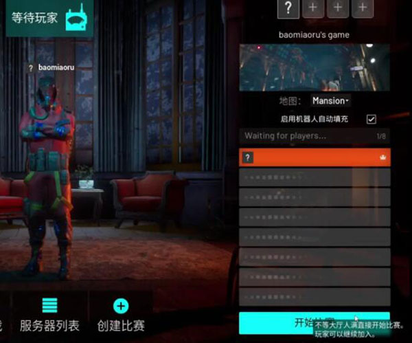 5、邀请好友后,等待玩家加入房间,点击开始比赛即可开始游戏。