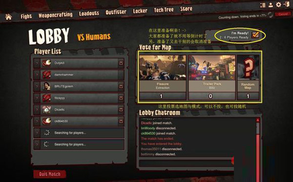 总述:游戏共四种模式。本轮游戏玩什么地图和模式由准备界面玩家投票产生(二选一或随机)。如下图: