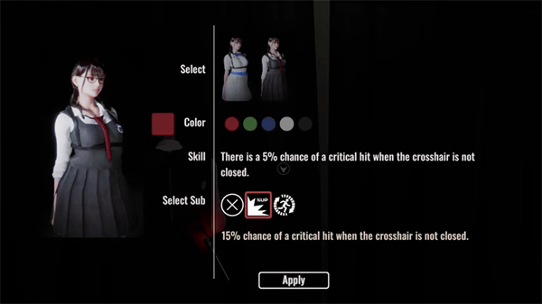 5、本作采用第三人称视角,玩家需要控制主角在游戏的各种场景中生存下去,如通过收集各种资源、升级武器和角色属性(衣装)。游戏中还有很多谜题需要解开,例如找到钥匙打开门、破解密码等。另外,玩家可在游戏过程中取得不同的校服更换,各校服有自己的特殊技能,其中包括不同国家的校服,团队希望能唤起玩家对校园生活的回忆。