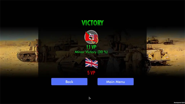 作为一般规则,VP 完全是通过打牌和征服地图上的一些特定目标,以及成功围攻或防御防御工事(在此游戏中,例如托布鲁克堡垒港口)获得的。