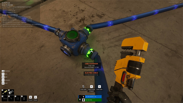 电缆存储在您的库存中。当您将电缆连接到端点时,当您离开时,它会开始卷起;当您的电缆用完或达到其极限时,它会停止,当您运行电缆时,这两者都会在工具提示上显示。
