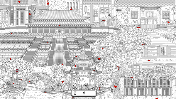 3、每一幅绝美场景中,都巧妙隐藏着100 只形态各异的可爱猫咪:有的蜷缩在茶馆的竹椅上打盹,有的偷偷趴在红灯笼下张望,有的踩着瓦片眺望远方,每只猫咪都带着憨态可掬的神情,等待着细心的玩家去发现。