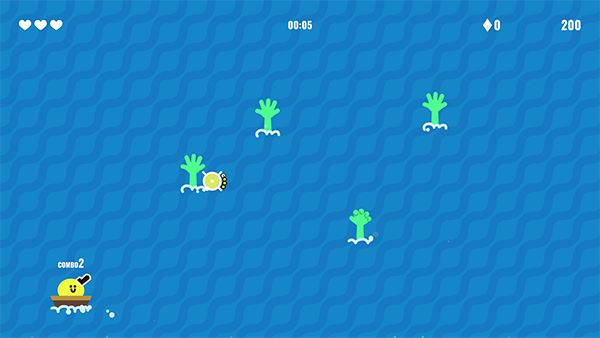 8、当船只触礁-触碰到敌人时,便会翻船葬身大海,游戏结束将记录你的分数;