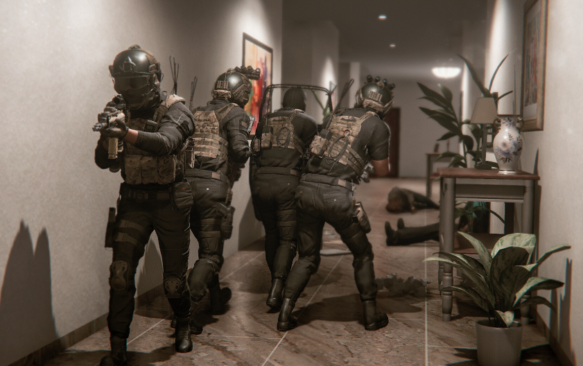 主打慢节奏、高沉浸的战术玩法,以写实的枪战音效、逼真的场景建模还原真实反恐氛围,无论是狭窄的室内走廊还是复杂的户外地形,都能让玩家身临其境。取胜的关键在于精准决策与高效战术执行:行动前需借助计划板梳理任务目标、分析地形布局、制定作战方案,明确分工后再稳步推进。在这里,鲁莽冲锋只会招致失败,唯有紧密的团队配合、灵活的战术调整、精准的操作执行,才能在步步惊心的对峙中突破困境,赢得胜利。
