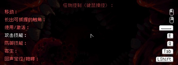 游戏中的主角拥有者寄生人类的技能,因此操作部分将分为怪物形态/人类形态。