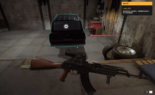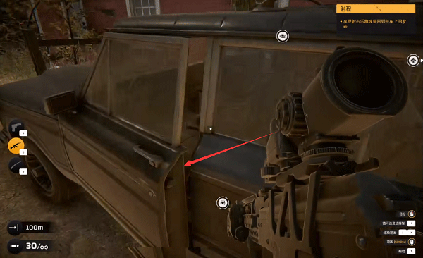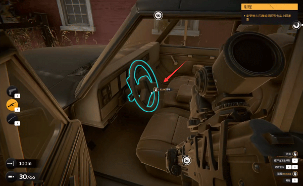 1、首先离开射击场,在房子旁边找到汽车,会有标志物指示;
