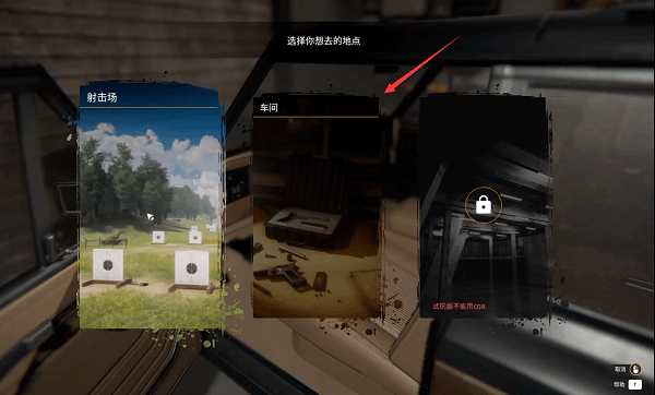 4、最后在目标地点里选择“车间”就可以从射击场回工坊了。