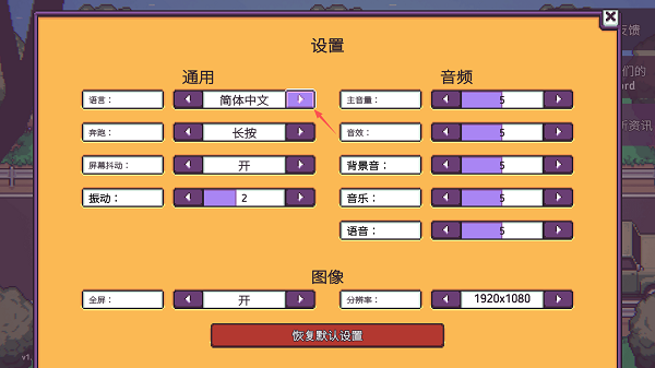 3、在通用下的语言栏点击右侧的切换按钮设置为简体中文模式;