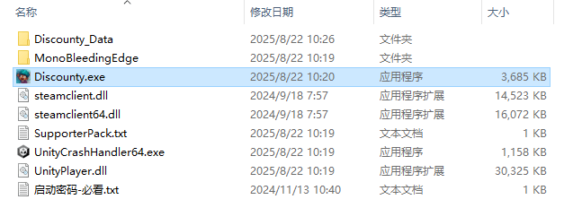 1、在本站下载打骨折超市日记游戏压缩包,解压后双击“Discounty.exe”启动游戏;