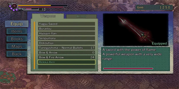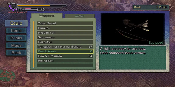 玩家可以在镇上废弃的铁匠铺中找到这把弓。他们大多会找到普通箭矢,但也有火焰附注箭,随着时间推移伤害更高。虽然弓箭适合对付那些难以接近的烦人敌人,但缺点是动作缓慢。这会让十兵卫容易被敌人反击箭矢和其他地面敌人的攻击。所以,除非必须用弓,否则玩家大概不会经常用弓,因为它没有其他游戏里弓的高度。