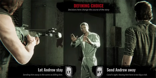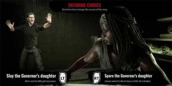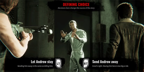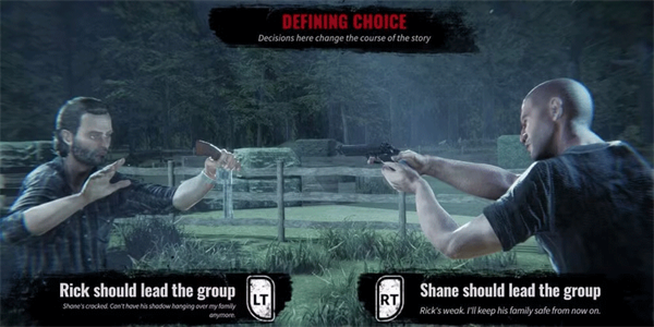 这是玩家被迫做出的最有影响力的决定,但绝非易事。瑞克有时可能不是最称职的领导者,但他也证明了自己非常关心周围的人,会不惜一切保护团队。因此,他是一个相当可靠的主角,需要时能保持冷静,但谢恩则更为果断,这在面对敌对时也可能成为优势。瑞克和谢恩对团队其他成员的态度也会截然不同,这甚至可能是生死攸关的关键因素。