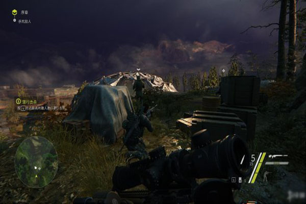11、杀完之后去Robert那获取无人机,对敌人营地进行侦查,敌人分布:房顶上两个,门口两个,正门左侧一个,右边房子边上一个。侦查完以后按照射击指示逐个击杀即可,没什么难度。