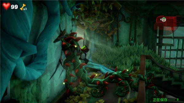 14、Boss的打法很简单,捡起锯木的工具装备起来,然后我们 走到花蕾的后边,吸引boss手上的花朵去咬住花蕾,这个时候,我们就可以锯掉,再灯光照射抱摔boss就可以了。