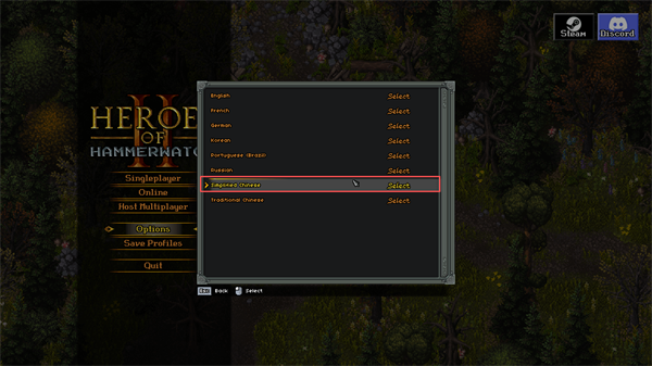 2、点击Simplified Chinese,即简体中文,接着按Esc将提示需重启游戏完成更改;