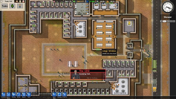 19、包括淋浴设施,洗衣设施,食堂和厨房,以及最重要的遥控门,这可以让大批犯人陷入愤怒状态,当然,加上教唆属性,此时出去和狱警大战八百回合一定是绝佳的选择。