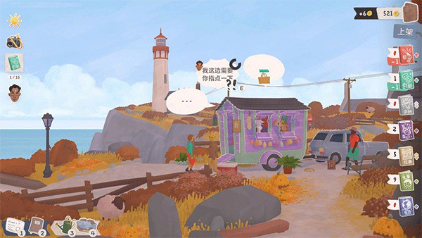 2.创意书店布置玩法:在悠闲慢节奏的海边小镇,时间会跟着潮汐一起慢下来。打理你的二手书店,用绿植、烛台等装饰物布置书店内外,你的装饰不只是美化空间,会悄悄影响书籍的销量,甚至解锁新的玩法。