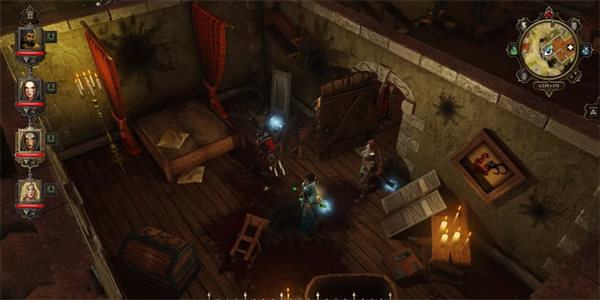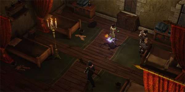 一旦你从后门绕到门外去解锁,里面会有两个房间。你进入的第一间房,门旁的桌子上会有一本关于谋杀的合页书。搜寻这本书会触发经验值和日志更新,届时你可以审问艾丝梅拉达,并用这本书作为证据。下一个房间是书桌上的旅店钥匙和通往地窖的门。这把钥匙可以打开案发现场房间里曾经上锁的箱子,从而为费罗尔公爵和埃斯梅拉达提供证据。