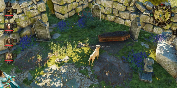 如果你没有宠物伙伴,你仍然可以挖出杰克的坟墓,发现一只绵羊。这促使我问殡葬师怎么回事。挖出来需要铲子。墓地里有一只,按住Alt键可以找到藏在地下的它。唯一能从殡葬师那里得到东西的方法是通过说服性技能检定。如果成功,他会坦白自己偷了一只羊,是为了掩盖杰克尸体被运走,这是受付钱的神秘人命令。这不会让你找到凶手太远,但能把他从嫌疑人名单中剔除。