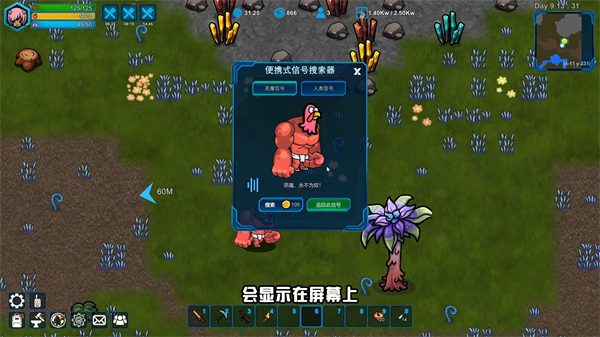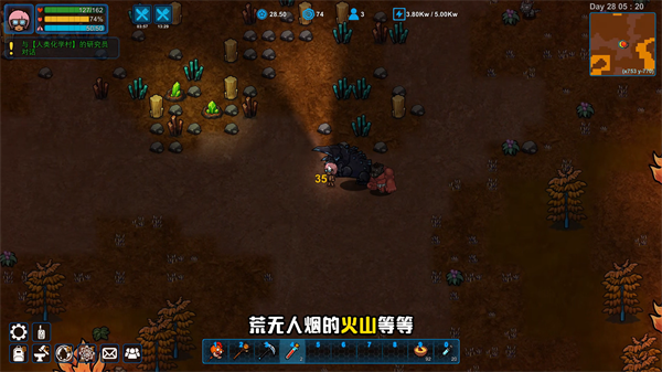 1、自由探索这个充满异星特色植物和动物的世界,从挖矿和伐木开始,打造更高级的工具,不断攀升科技树,建立并扩建自己的庇护所。