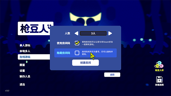1、打开枪豆人电脑版,在游戏主菜单点击在线游玩-创建房间;