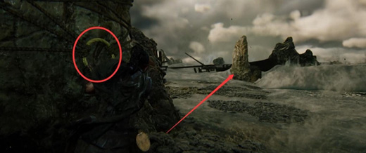 2、然后边往回跑边找长矛扔,跑到海边处,和之前躲岩浆一样,趁海浪退去的时候,迅速冲过去抓着石碑底部的圆环,等海浪再来时就不会被冲走。