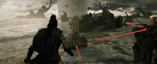 4、依次抓石碑圆环,然后冲另一个石碑,一直往前走,见到巨人就会触发剧情。