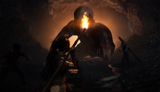 1、与同伴进入巨人洞穴后,会被巨人追着跑,这时候同伴会点燃路上的长矛,跑过去拿起点燃的长矛,朝巨人身上扔。