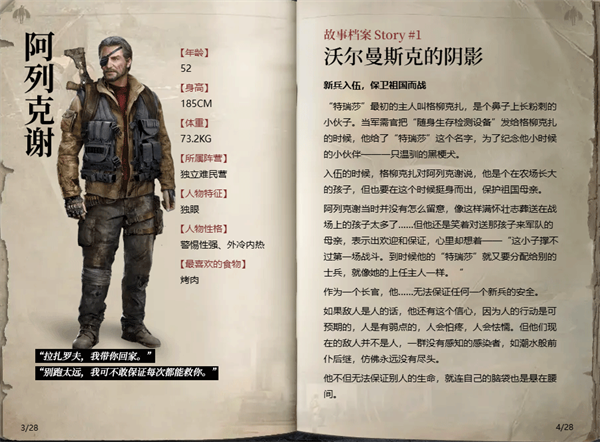 【人物性格】坚强,正直,珍视生命,给人以鼓励,自我牺牲