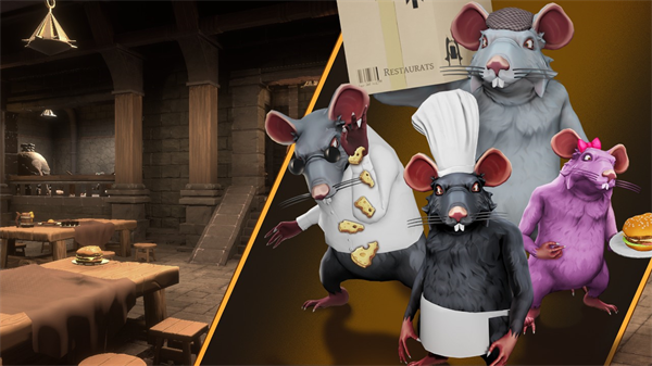 烹饪时间紧迫,客人们早已饥肠辘辘!食材不小心掉到地上?完全不用在意 —— 毕竟我们是灵活的老鼠大厨,随性投掷反而能解锁更多烹饪乐趣!