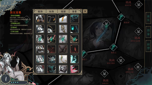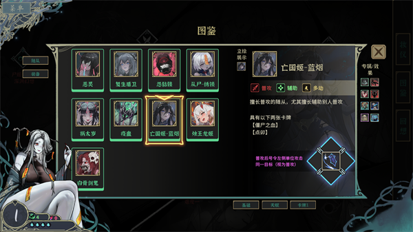 尸姬大人会在玩家每次升级时,为麾下随从施加特殊的 “阴文” 效果,增强随从的战斗能力。要注意的是,“阴文” 也有可能附带诅咒效果。这个系统为游戏加入了风险与收益的平衡机制,让决策过程变得更具复杂性。