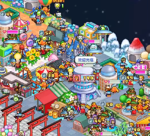 4.设施类型丰富多元,既有便利店、公园这类生活便民设施,也有章鱼丸子店、电影院等娱乐休闲设施,轻松吸引全宇宙游客前来打卡。