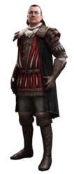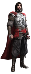 前作《刺客信条2》的最终BOSS,圣殿骑士头目,害死了艾齐奥的父兄,但最终艾吉奥并未杀死他。在本作中,Rodrigo开始淡出,虽然Rodrigo名义上是教皇,大权已然落在了Cesare手中。然而Rodrigo对这个非嫡子掌权表现出极大的不满,发现Cesare贪得无厌远胜于自己当年。父子间矛盾越演越烈,最后Rodrigo对儿子痛下杀手,却不成功,反被Cesare毒死(历史上Rodrigo死因不明)。