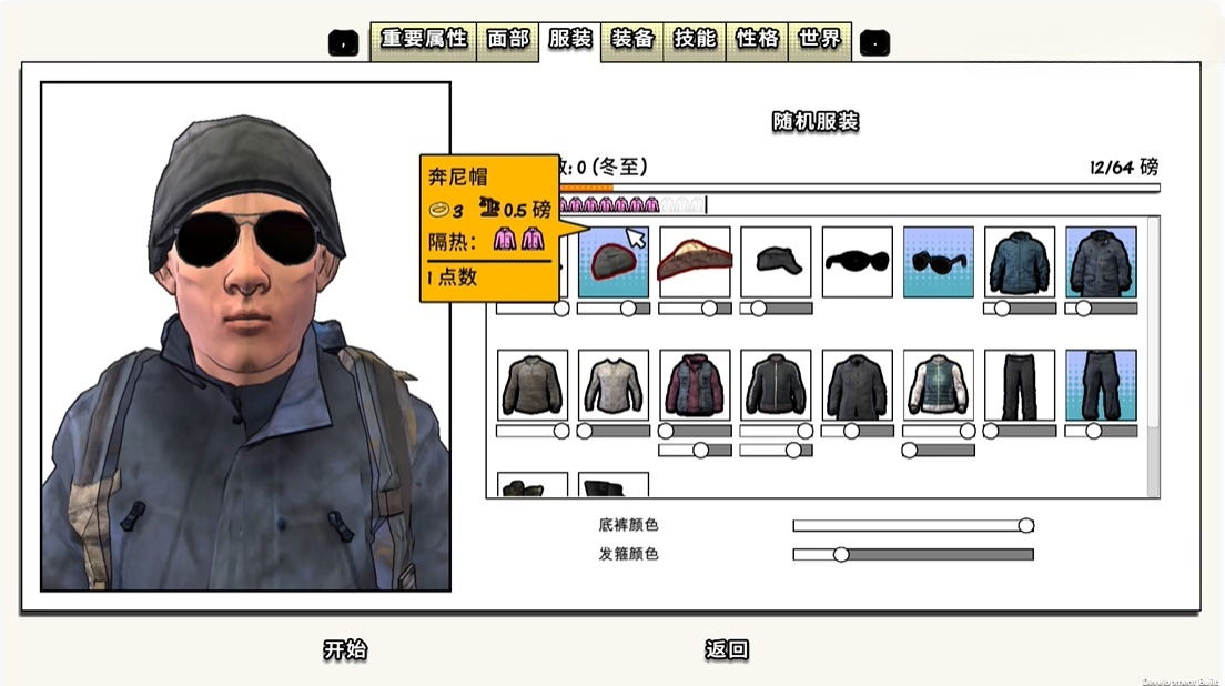 开启新游戏时,可全方位自定义角色,包括外貌、服饰、装备、技能与性格特质,可通过随机按钮快速生成心仪的角色形象。采用程序生成世界机制,每一局游戏都会生成全新的随机地图,地图内包含道路、河流、废弃城镇、幸存者据点等丰富场景,带来差异化的探索体验。