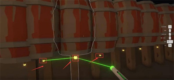 7、选择导火线连接工具后,会进入连接状态,会看到一些黄色高亮处,点击烟花本体,就可以进行连接了。