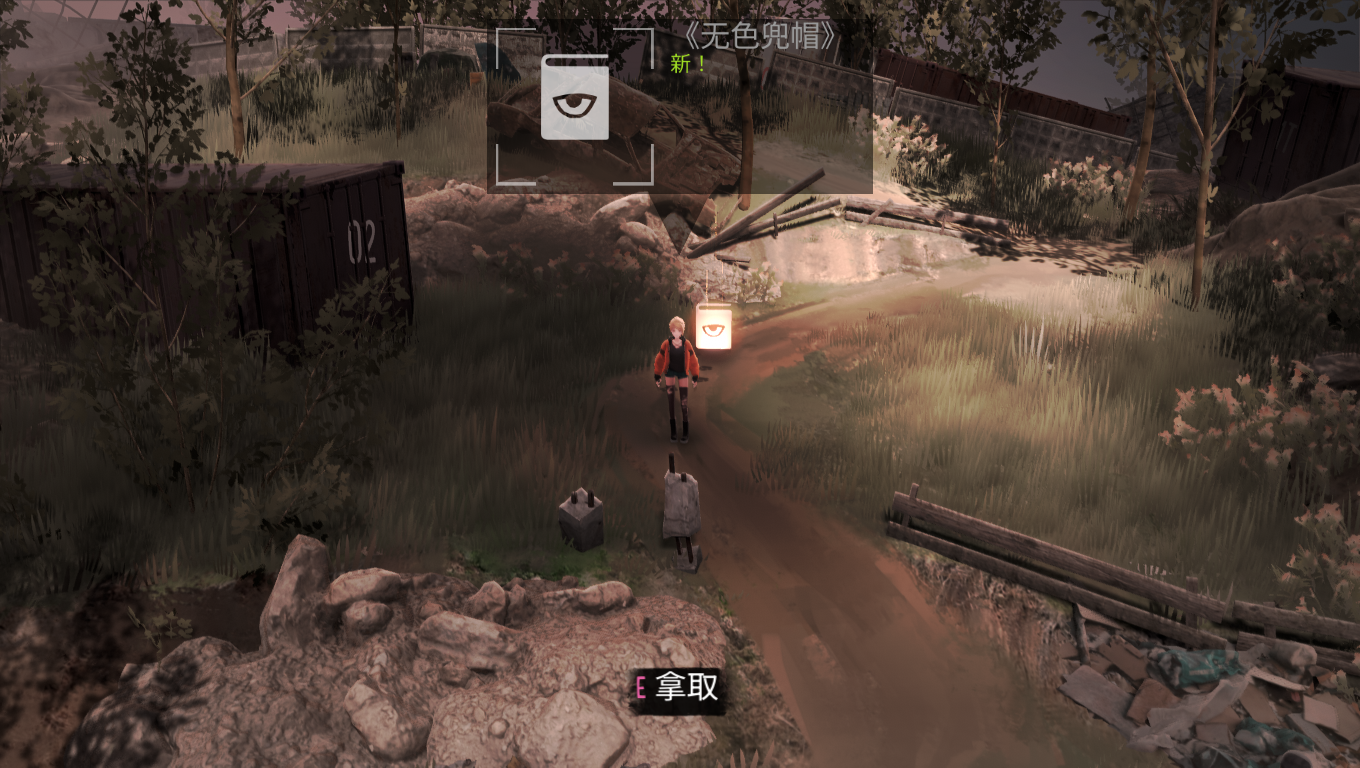 3、随后可以在路上获得“无色兜帽”,可以减少暴露概率,点击“Alt”键使用。