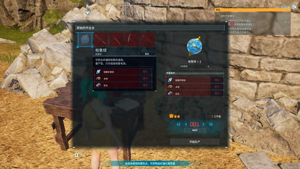 9、然后收集材料进行制作,制作完成后寻找帕鲁抓捕就完成新手教程了,现在开始努力成为最强的帕鲁训练家吧!