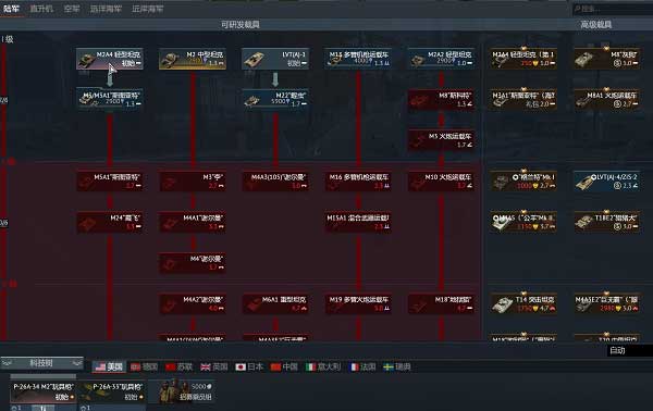 在游戏的科技树中,你可以看到各种不同类型的载具和装备。这些载具和装备都有自己的研发进度和价格。你可以根据自己的喜好和战略需求来选择研发和购买哪些载具和装备。通过不断地研发和购买新的载具和装备,你将能够提升自己的战斗力和适应不同的战斗环境。