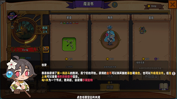 6、获得胜利后的金币可以用来购买新装备或者角色,也可以升级魔法书;