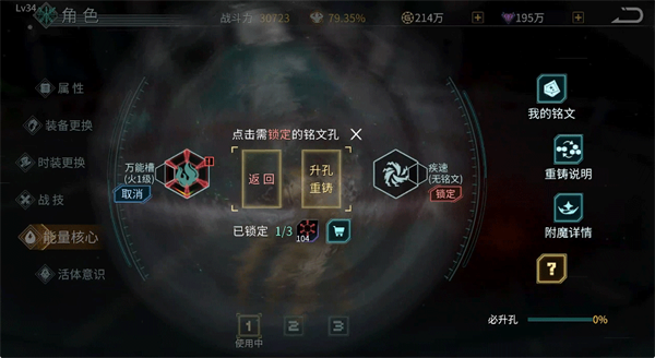 6、开启铭文孔的概率是随机的,重铸锤有可能会减少铭文孔。