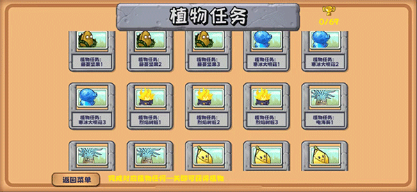 9、最后再给大家展示一下特殊的植物任务,只需完成对应植物任何一关即可获得该植物,让这些强大植物助力你击败更强大的僵尸吧~